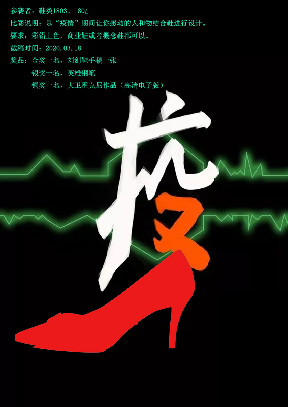 值得一提的是,他邀请了一位在疫情期间做出贡献的消防官兵进入直播群。这位官兵承担着抗疫物资运输、救援等工作,前段日子刚救援了一个因酒精使用不慎引发火灾的小区。他热爱生活、喜欢美术,尤其爱收藏球鞋,因此,刘剑老师特地在课堂上结合大作业——“设计比赛”的形式为他设计一款有个性的“抗疫”鞋子。