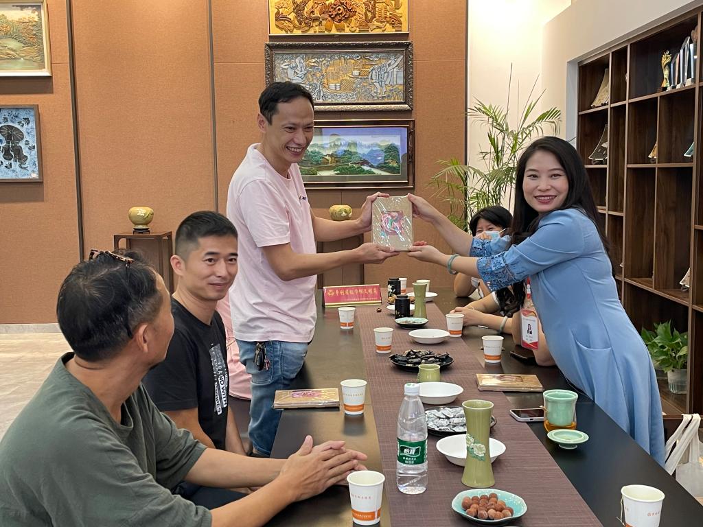 知识竞答开始之前,懿鹿岗岗长郑央凡老师代表全体岗员欢迎创意设计专业群党支部党员教师的到来,并介绍了瓯塑艺术研究院创办以来的成果业绩,回顾《雁荡秋色》等具有代表性的瓯塑精品,展望瓯塑艺术的创新应用和发展思路,创意设计专业群党支部党员教师们对瓯塑艺术研究院的成果纷纷点赞,也期待今后在产学研用上与瓯塑艺术研究院能有进一步的合作。