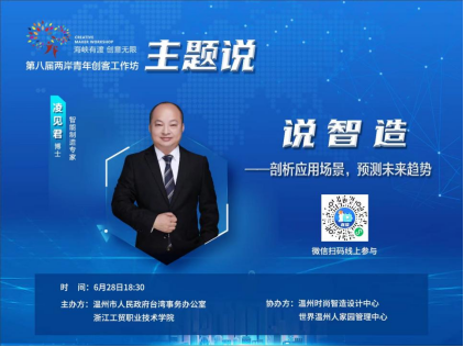 2022年6月28日晚,两岸青年创客工作坊之“主题说”系列讲座正式开始。智能制造专家凌见君博士为两岸青年创客带来了一场题为“说智造——剖析应用场景,预测未来趋势”的主题讲座。