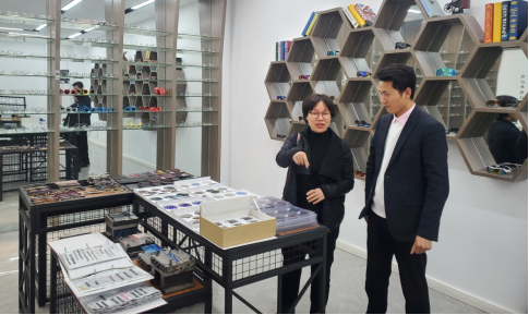 瑞安市华图眼镜设计有限公司总经理安金杰对于我们工业设计教师一行的来访表示热烈欢迎,并带领老师们参观了公司眼镜新产品展厅,简要介绍了公司的发展历程、经营情况及企业的业务范围等,共同探讨了校企合作人才模式。安总经理表示,希望与公司工业设计专业后续能开展更深入的合作,在科研技术、课程建设、教材开发、专业竞赛等方面能开展进一步的合作,为温州眼镜产业发展提供高质量的眼镜设计专业人才。
