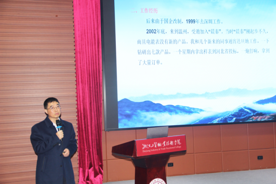 浙江晨泰科技股份有限公司副总工程师胡东方做《大国工匠-工匠精神培育与创新》主题演讲