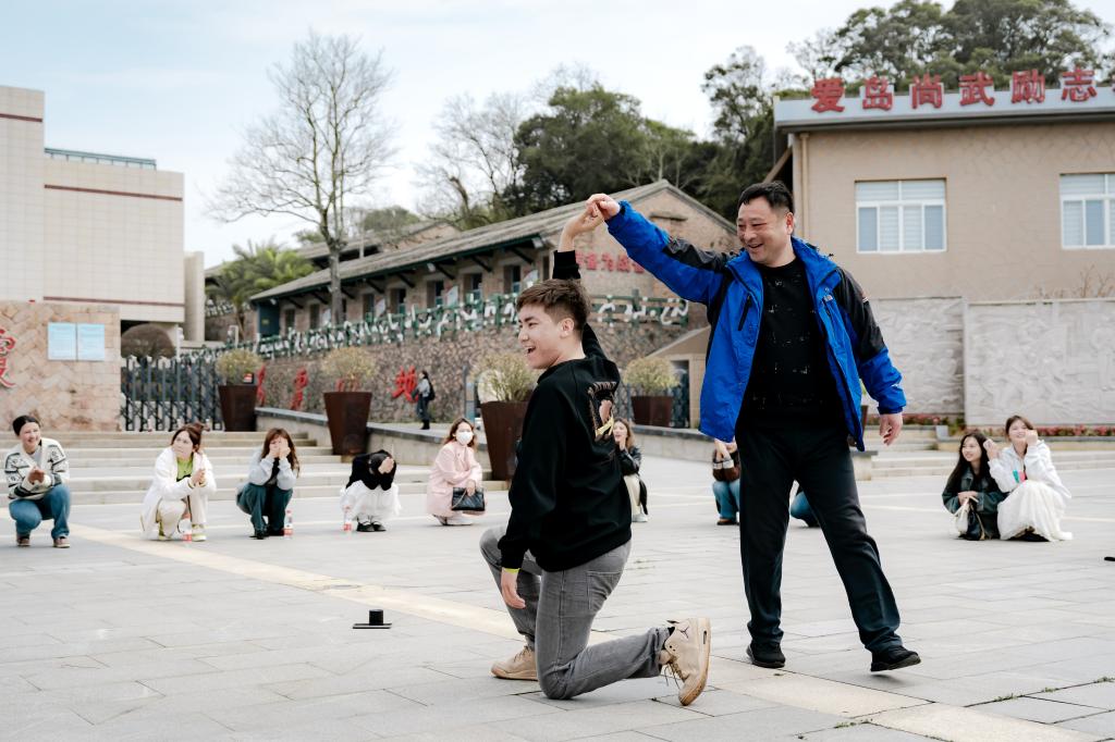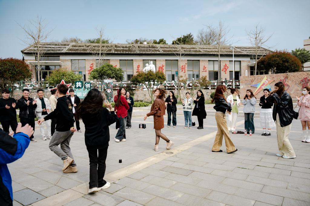 海的广阔震撼着来自边疆的民族员工们,大家被海岛的美丽景色、渔村错落有致的石头屋民居深深吸引住了。在洞头先锋女子民兵连纪念馆广场上,大家携手围成同心圆,迎着海风情不自禁跳起了民族舞。