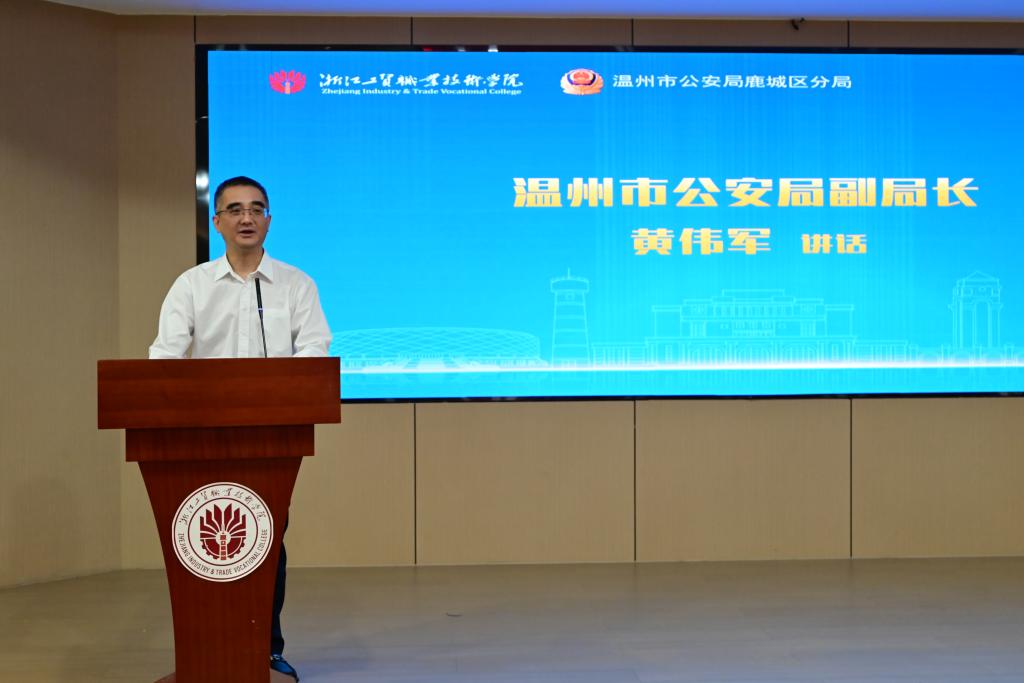 温州市公安局副局长黄伟军在致辞时高度肯定公司在平安校园建设做出的努力和成绩。他指出,联盟的成立既是贯彻落实习近平总书记关于民族团结进步的重要论述的重要举措,又是高校与公安系统协同加强各民族交流交往交融、铸牢中华民族共同体意识的有效措施,将有力助推平安温州建设。他提出三点希望:一是希望将联盟打造成民族团结进步的窗口;二是希望将联盟建设成平安校园的青年驿站;三是希望将联盟创设成服务各民族员工成长成才的温州大家庭。