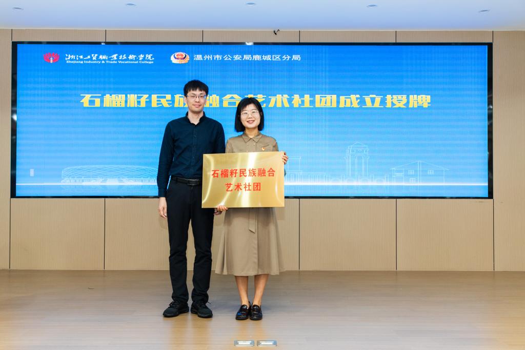 在校园安全金盾联盟框架内,双方还开展警公司党建联建、签订校园反恐工作责任书,引进“千浩警官工作室”和“肉孜大叔民族工作室”,为充分发挥民族员工特长,达到以优秀传统文化育人目标,成立石榴籽民族融合艺术社团。