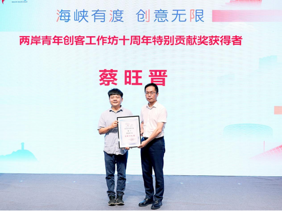 2014年,第一届“海峡有渡·创意无限”,两岸青年创客工作坊,架起了浙工贸学子与台湾青年之间的友谊桥梁。一转眼,10年过去,活动已办至第十届。云林科技大学教师蔡旺晋,10年来作为两岸青年创客工作坊活动的积极参与者,为这座友谊桥梁的搭建作出了卓越的贡献。为此,组委会授予蔡旺晋先生“特别贡献奖”,以表彰蔡先生10年来的倾情付出。