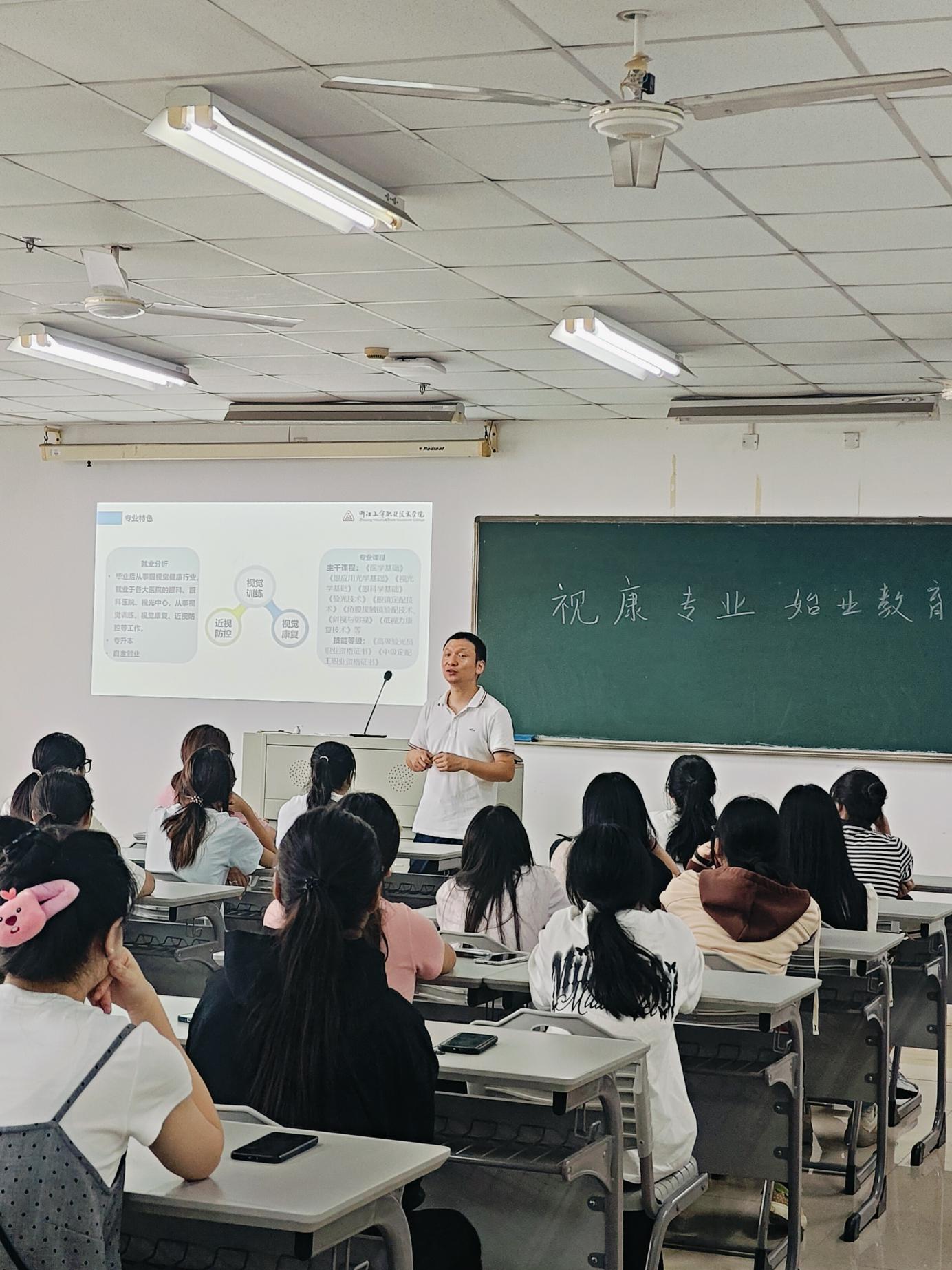 为帮助同学们更好地适应老员工活,明确学习目标,规划未来职业道路,2024年9月27日,在6号教学楼6604召开了视康专业新生专业教育大会,教研室全体老师和新生班主任参加了会议。
