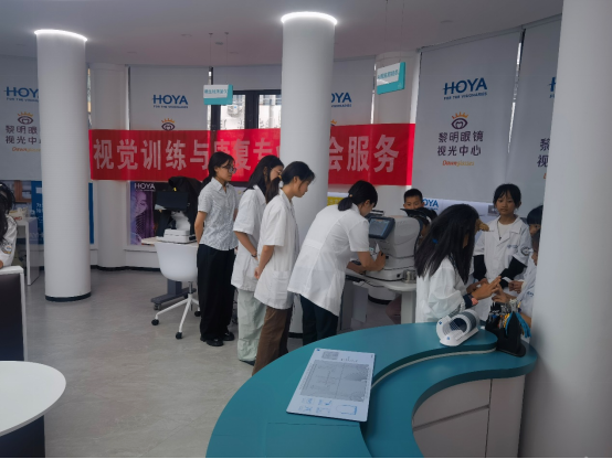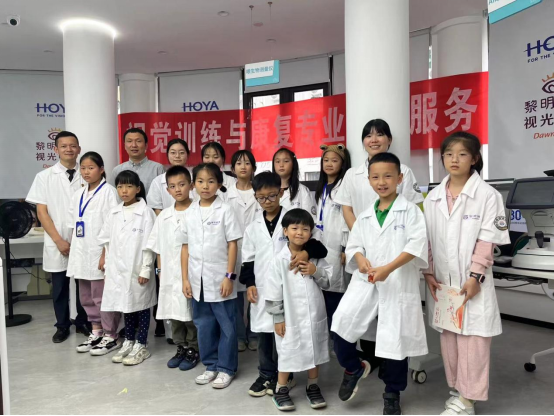 10月4日,为普及近视防控知识,助力少年儿童从小养成规范用眼的习惯,在国庆假期期间,视觉训练与康复专业联合合作企业黎明眼镜在东瓯智库万源路店举行“小小视光师”职业体验活动。参加人员有视觉训练与康复专业主任张敏老师、黎明眼镜视光中心主任林爱平以及部分视光师、员工,参加活动的少年儿童来自临近社区。活动中,大家认真听讲,积极互动,踊跃参与操作体验,完成了一次意义非凡的职业体验,收获了健康与快乐。