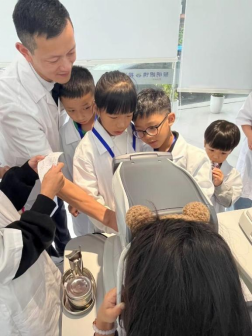 在操作体验环节,黎明眼镜的视光师指导小朋友们进行操作,大家井井有条地排队体验,检查视力、测量眼轴,完成视觉健康档案的建立。最后,都获得了“小小视光师”的证书和公司赠送的礼品,收获满满。