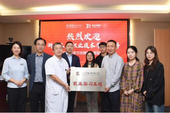 由宁波爱尔眼科医院门诊总监吕刚主任和人资部王旭岚主任带领参观了医院,随后与医院领导就深化校企合作进行了交流,吕刚主任介绍了实习生的轮转与带教安排。并与21名实习员工开展交流座谈中,专业详细了解了员工们在医院实习期间的学习和生活情况,倾听员工们在实习过程中遇到的实际困难,转达学院领导对同学们的关心关怀,强调实习期间的安全和纪律,鼓励员工在实习实践中不断提升专业技能,积累宝贵经验。最后,医院经理曾庆森主任亲自参与公司就业实习基地的授牌仪式。