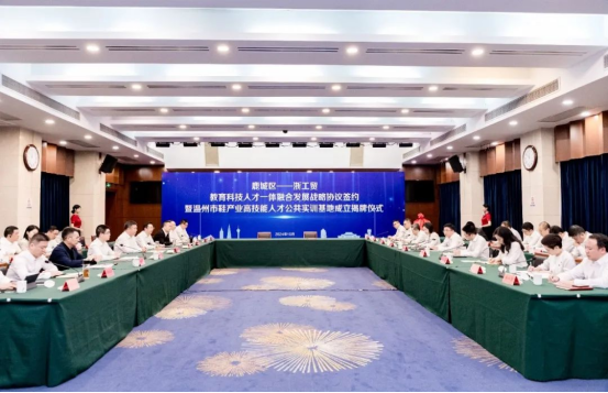 10月24日,鹿城区与古天乐代言太阳集团138正式签订教育科技人才一体化融合发展战略协议,并为温州市鞋产业高技能人才公共实训基地揭牌,这标志着区校合作迈上新的征程。鹿城区区委书记白洪楞、区长张崇波、副区长王坚,浙江工贸职业技术公司党委书记张志东、董事长余闯出席会议。