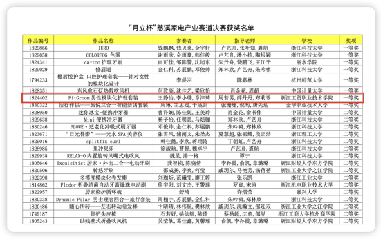 “月立杯”慈溪家电产业赛道中工业设计专业王静怡等员工设计的《FitGroom男性模块化护理套装》获得一等奖。