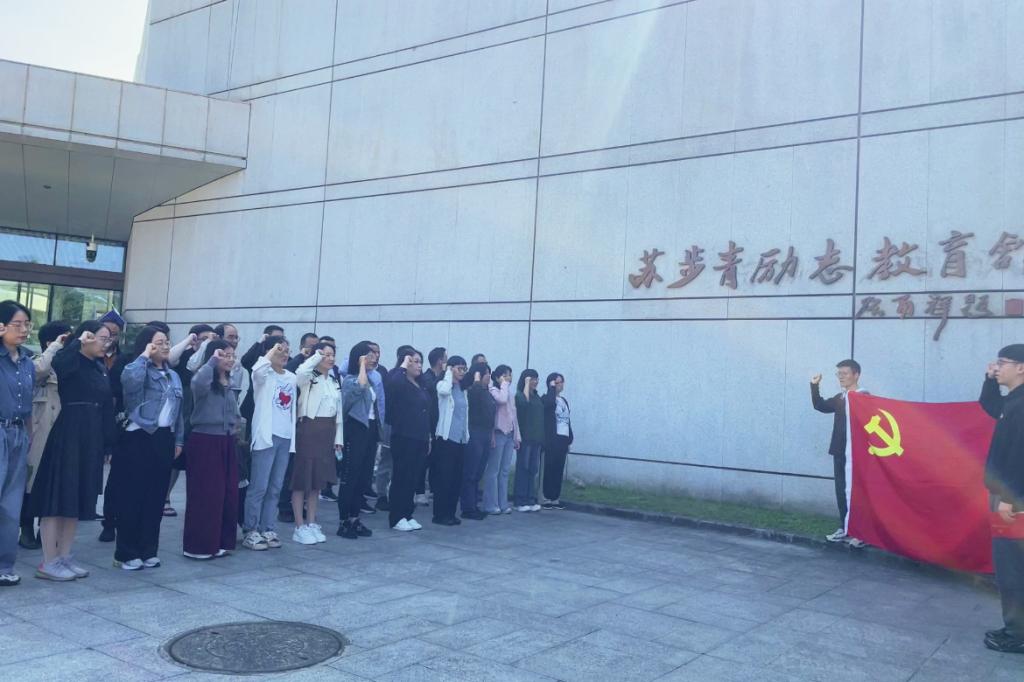 全体党员整齐列队在苏步青励志教育馆广场,面对鲜红的党旗庄严地举起右手,紧握拳头,重温入党誓词,铿锵有力的声音中饱含了对党的坚定忠诚,不忘理想信念初心,牢记立德树人使命。