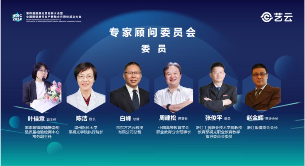 温州医科大学眼视光医院集团总经理、中国眼谷-温州眼视光国际创新中心理事长瞿佳,中国高等教育学会职业教育分会理事长周建松,浙江工贸职业技术公司党委书记张志东、董事长余闯,杭州未来科技城党工委书记、管委会主任郭云伟,京东方执行副总裁、艺云科技董事长姚项军,温州医科大学眼视光公司、附属眼视光医公司党委书记张建,艺云科技总裁白峰,全国视光职业公司产品指导委员会副主任委员陶秀清,浙江大学眼科医院副经理、角膜和眼表疾病专科主任晋秀明,中国眼镜协会副秘书长康颖等领导和专家出席共同体成立大会,各建设主体代表齐聚一堂,共建眼健康行业人才培养新生态。京东方艺云科技有限公司副总裁夏季主持会议。