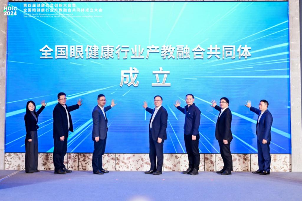 在全体建设单位的共同见证下,瞿佳、张志东、郭云伟、姚项军、张建、陶秀清、康颖共同启动全国眼健康行业产教融合共同体。