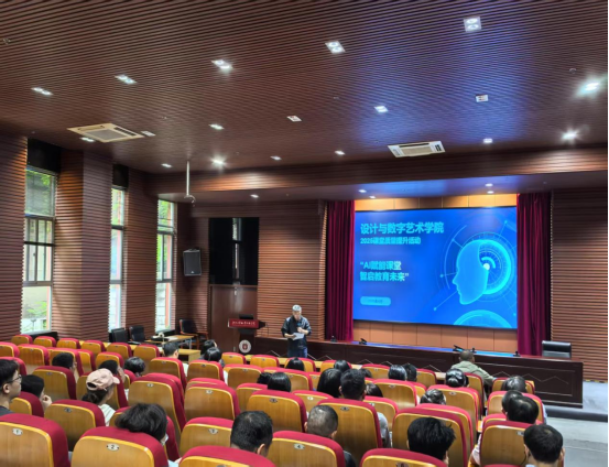 周若男、王如畅、戴盈盈三位教师代表,结合自身教学实践,依次分了享AI与课堂融合的探索经验。周若男以“AI辅助色彩构成”入手,展示了如何利用智能工具优化员工的色彩运用;王如畅重点解析了AI与IP形象设计的结合,强调创意与智能结合的重要性;戴盈盈则通过AI诊疗运用于近视防控的实践案例,生动呈现了技术赋能下的沉浸式学习体验,并反思了员工应当如何正确使用AI工具。三位教师的分享既有理论深度,又具实操价值,现场反响良好。