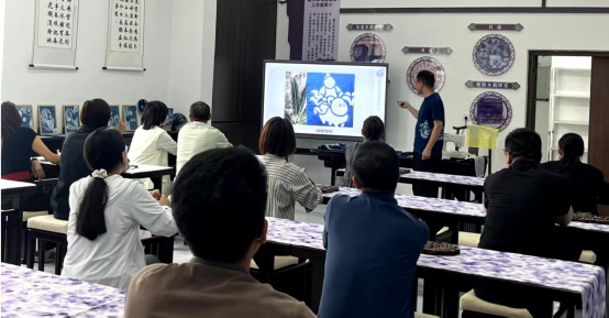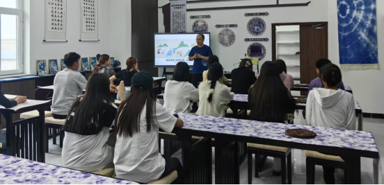 活动伊始,杨从锋老师给同学们讲解了夹缬技艺的历史渊源、制作工艺和文化内涵。夹缬作为中国传统印染技艺的杰出代表,承载着古人的智慧与审美,在历史的长河中熠熠生辉。为强化地域文化特色,杨从锋老师联合浙阿丝路夹缬创新基地,将龟兹壁画中的纹饰、色彩等元素融入夹缬设计,实现非遗技艺与千年丝路文化的深度对话。