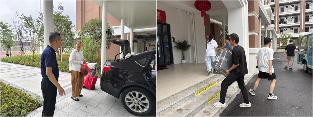 考虑到公寓区地理位置特殊,大量行李搬运易造成拥堵,在公司领导的关心支持和有关部门的积极配合下,临时开放家长通道,允许家长驾车直达公寓门前卸放行李,从源头解决了员工 “搬运难” 的问题,极大节省了行李转运时间,也让家长们吃下 “定心丸”。分院辅导员、志愿老师和保卫部相关老师团结协作,力保区域交通顺畅,确保员工报到及行李搬运工作顺利开展。