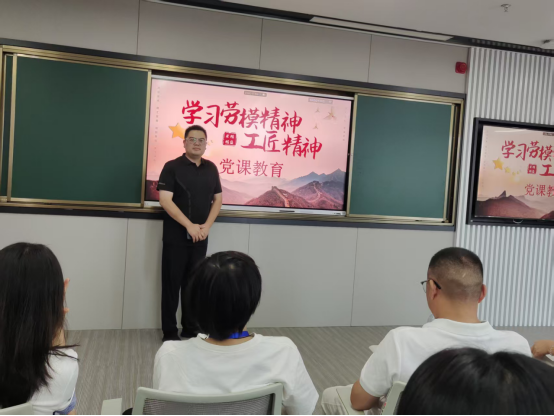 浙江工匠公司轻工分院培训负责人潘俊杰讲授“党课—劳模精神和工匠精神”