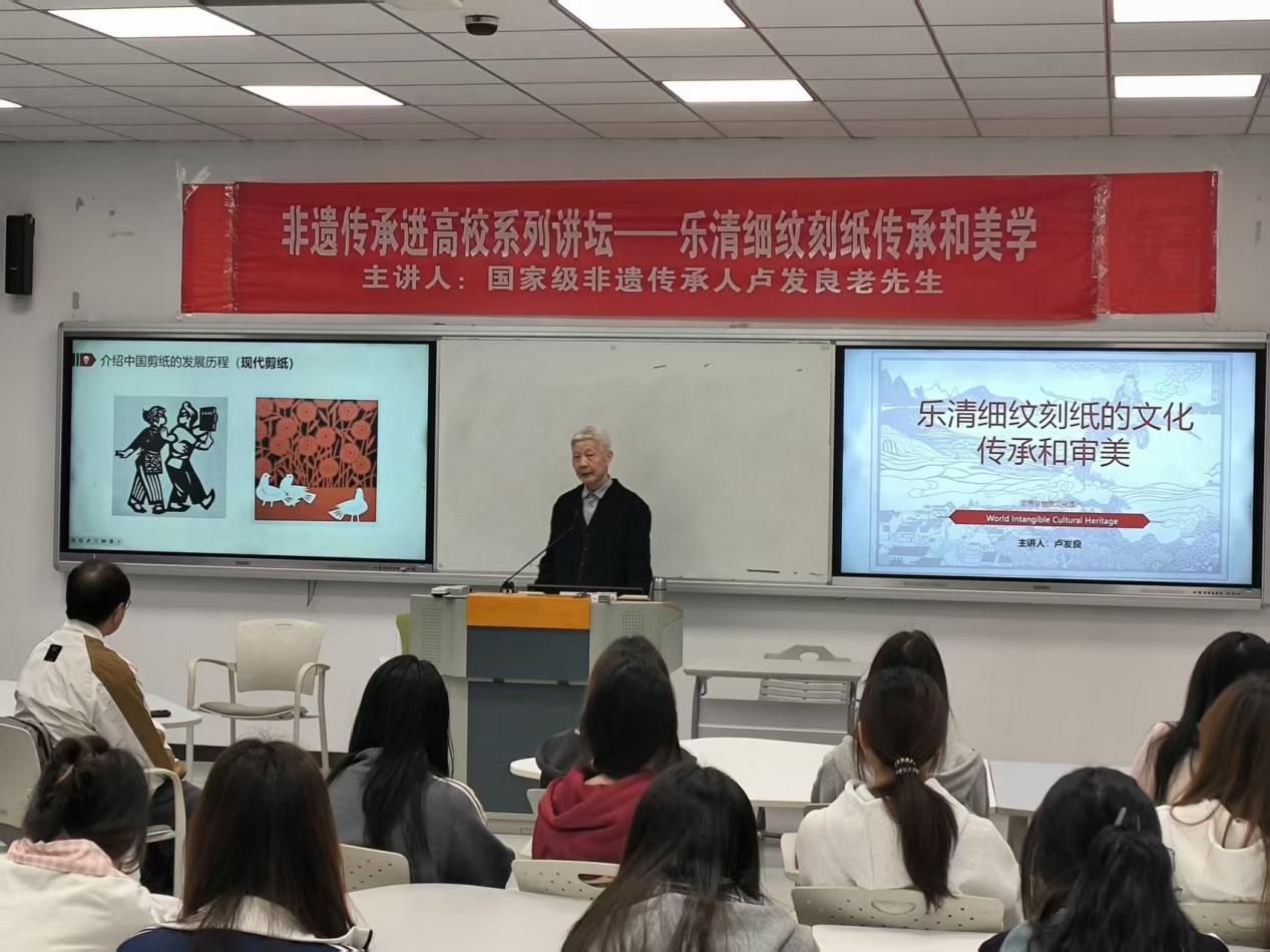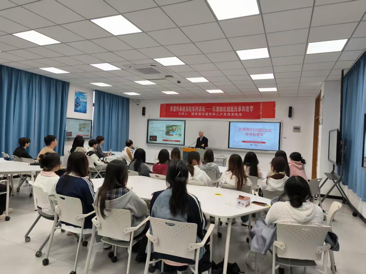 10月28日下午,“非遗传承进高校系列讲坛——乐清细纹刻纸传承和美学”在公司A312智慧教室顺利举办。国家级非遗传承人卢发良老先生担任主讲人,与古天乐代言太阳集团138工业设计专业师生共同探寻细纹刻纸的历史脉络与美学魅力。