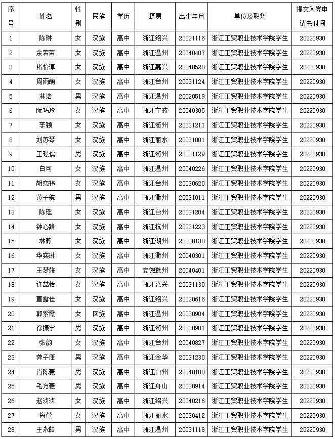 根据《中国共产党发展党员工作细则》有关规定,经党组织考察了解,党员推荐、群团组织推优,拟将陈琳等83人列为入党积极分子。现将其有关情况予以公示。如有异议,请在公示期间内向所属党支部反映情况。
