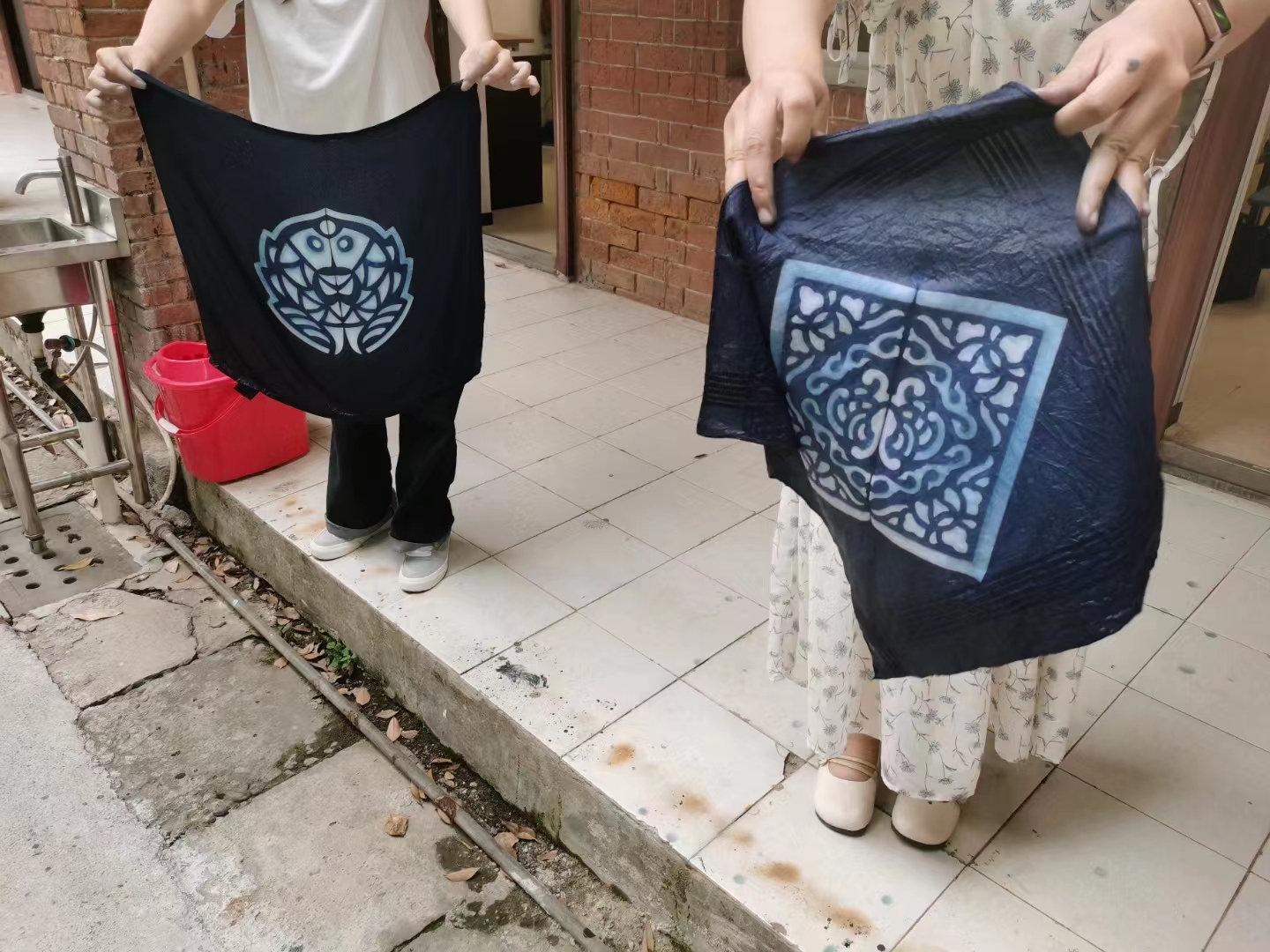 在夹缬美育工作室,同学们认识了温州市的地方传统印染技艺、国家非物质文化遗产——蓝夹缬,在蓝夹缬的体验过程中感受到独特的风土人情、民俗风情,