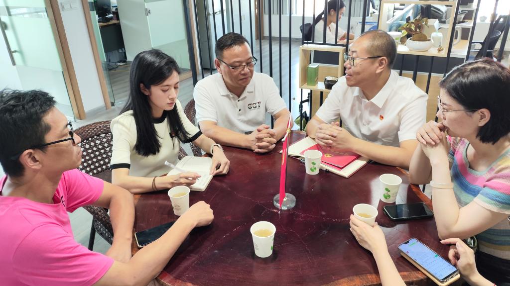 张云帆副书记表示,开展学习贯彻习近平新时代中国特色社会主义思想主题教育是今年的重大政治任务,我们要严格按照中央和上级党委指示要求,扎实开展好这次主题教育,牢牢把握“学思想、强党性、重实践、建新功”的总要求,加强理论学习,坚定理想信念,升华觉悟境界。并就双方党支部规范化建设、创新党建活动方式、发挥协会党建引领作用,以及后续党建联盟平台的工作以及专业合作、员工共同培养工作等方面进行了深入交流。