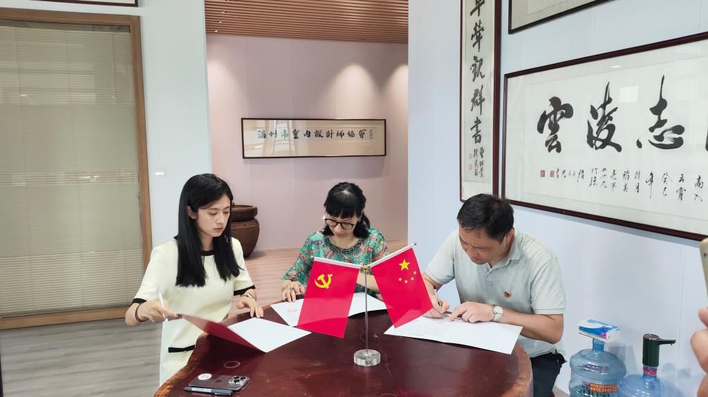 最后双方签订了《党建联建协议书》并进行了党建联建授牌仪式,一致表示将积极发挥支部战斗堡垒作用,携手立足社会责任和高技能人才培养,整合全社会资源,助推公司艺术设计专业和温州市室内设计行业的健康发展。