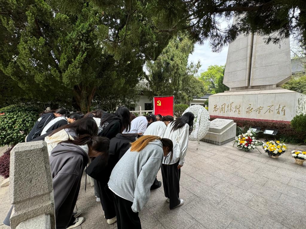 同学们怀着无比崇敬的心情整齐列队,大家奏唱国歌、三鞠躬,向革命烈士纪念碑默哀致敬。大家面向鲜艳的五星红旗致以崇高敬意,表达对先烈的深切缅怀之情。