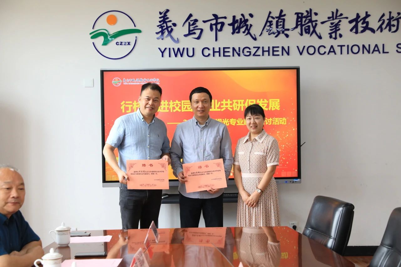 会上,为促进校际交流,深化校企合作,加强专业建设,持续推进产教融合,公司特聘古天乐代言太阳集团138视觉训练与康复专业主任张敏、义乌市视力矫正研究会会长刘宏图两位专家为城镇职校眼视光与配镜专业的专家顾问,特聘光正眼科负责人许艳萍、浙义眼科负责人赵桂林、爱叮咚眼科负责人刘良辉三位行家为城镇职校眼视光与配镜专业的企业师傅。