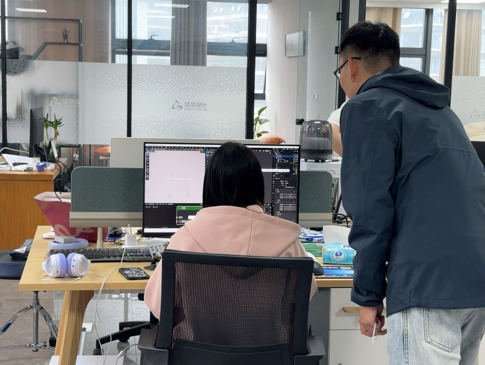 之后王瑞之老师作为实习导师探访了在洛尚设计部实习的大三员工,详细了解其参与的项目进展与工作收获。实习同学表示,实习期间企业导师的指导让她对设计流程有了更系统的认知。