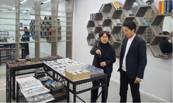 瑞安市华图眼镜设计有限公司总经理安金杰对于工业设计教师一行的来访表示热烈欢迎,安金杰总经理带领老师们参观了公司眼镜新产品展厅,并简要介绍了公司的发展历程、经营情况及企业的业务范围等,共同探讨了校企合作人才模式。安金杰总经理表示,希望与公司工业设计专业后续能开展更深入的合作,在科研技术、课程建设、教材开发、专业竞赛等方面能开展进一步的合作,为温州眼镜产业发展提供高质量的眼镜设计专业人才。