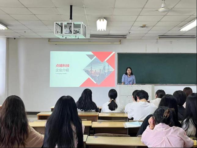 招聘会正式开始前,招聘人员和在场同学们简单沟通和了解相关情况,并收集了同学们准备的简历。随后点晴科技负责人开始正式介绍该公司。点晴科技是中国顶尖游戏美术制作企业,成立于2013,是家集游戏制作平台、元宇宙NFT平台、VR视觉体验自主发,及高品质游式VR美术外包服务为一体的移动互联公司,总部位于上海,同时也在广州,合肥等省会城市设有分公司。公司福利待遇良好,有各类俱乐部活动,时令活动,部门活动,生日活动和年会以及年度体检。除此之外还有年终奖,项目分红,节日福利等。