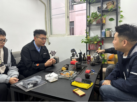 授牌仪式结束后,王瑞之老师探访了在温州森德锁具有限公司实习的工业设计专业员工李锦奇。王老师详细了解了李锦奇的实习情况,对其在实习期间的表现给予了高度评价,并鼓励其继续努力,将所学知识与实践相结合,为未来的职业生涯打下坚实的基础。