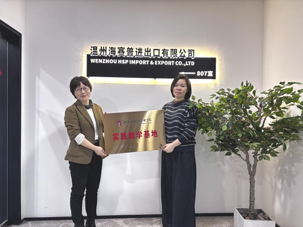 为了进一步加强合作,郑莉珍老师代表公司向温州海赛普进出口有限公司授予了“实践教学基地” 的牌匾。这一举措标志着双方的合作进入了一个新的阶段,未来将在员工实习、实践教学、项目合作等方面开展更深入的合作。