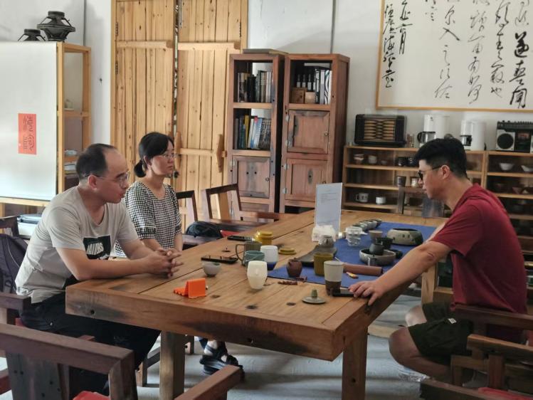 交流期间,在海陶美术馆负责人的热情引导下,老师们深入参观了美术馆的展览区、创作工坊及体验空间。馆内陈列的各类以海洋文化为核心的陶艺作品,其独特的创意、精湛的工艺和深厚的文化底蕴,给老师们留下了深刻的印象。在随后的座谈会上,双方进行了热烈而富有成效的交流。工业设计专业教师首先介绍了公司的专业特色、人才培养模式以及近年来在文创产品设计、智能家居设计等领域取得的成果。他表示,洞头海陶美术馆作为一个集艺术创作、展览与文化交流于一体的优质平台,其“海洋文化+陶艺”的定位与工业设计专业追求创新、注重文化赋能的设计理念高度契合。