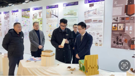 1月4日展出期间,公司党委书记张志东、党委委员、宣传部长杨晓珍一行领导莅临展厅参观指导。在展厅现场,校领导不时驻足观看,详细了解展品设计理念、制作流程等情况,并对设计与数字艺术公司2024届毕业生设计的作品给予了充分肯定。张书记强调,设计公司肩负着为党和人民培养优秀艺术设计人才,为国家文化发展服务的崇高使命,要深入学习贯彻党的二十大精神,学习领会习近平总书记关于“推动中华优秀传统文化创造性转化、创新性发展”的重要论述,勉励大家向前沿科技进军,将中国传统文化融入现代化设计当中,加快成果转化运用。