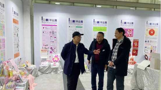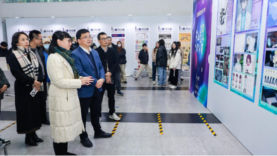 1月5日,集团董事长余闯、副董事长汪焰分别莅临展厅参观指导。余董事长指出:这场迈向社会的征途,交融汇聚着每一位毕业生的成长与收获,是对坚守者的嘉许。我们的毕业设计展要走出去,借助更广阔的平台,向社会展示我们工贸学子的风采。