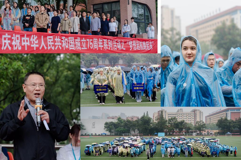 初夏的风雨阻挡不了校园迸发的激情,班级代表方阵首先进场,一群群意气奋发的设计学子朝我们走来,他们迈着坚定自信的步伐高喊着铿锵有力的口号展现出多元的班级文化,绽放出个性的班级魅力,为本次趣味运动会开幕式增添一抹亮丽的色彩。