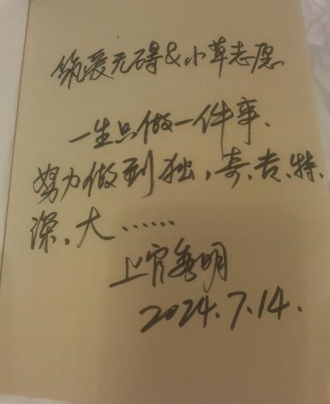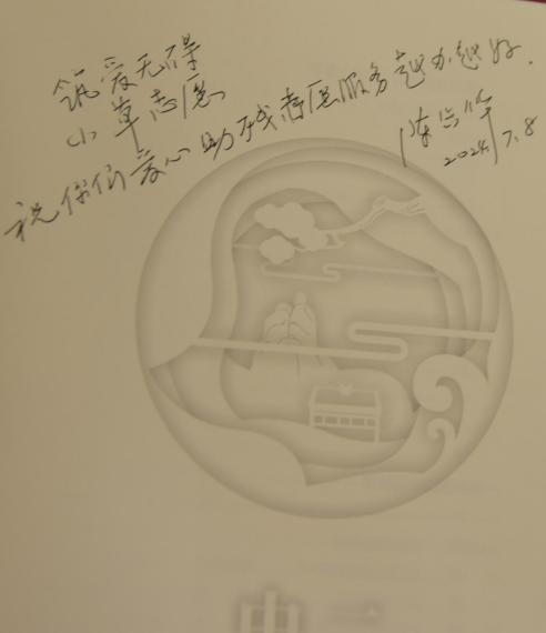 (图为国家茶叶标准化技术委员会白茶工作组组长陈兴华、原中国民间文艺家协会剪纸艺术委员会原副主任上官秀明题词 温州医科大学阿尔伯塔公司 供)