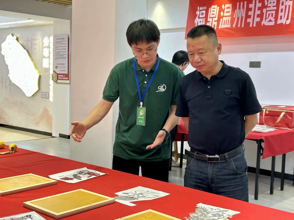 (图为福鼎市副市长陈晓龙、温州医科大学副董事长朱雪波、浙江工贸职业技术公司党委副书记王春柳欣赏非遗