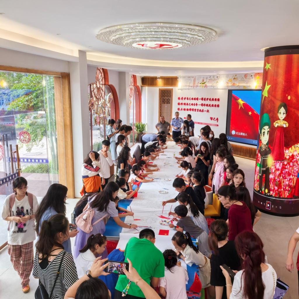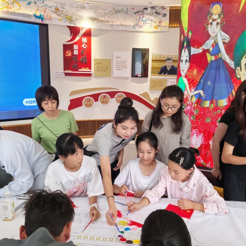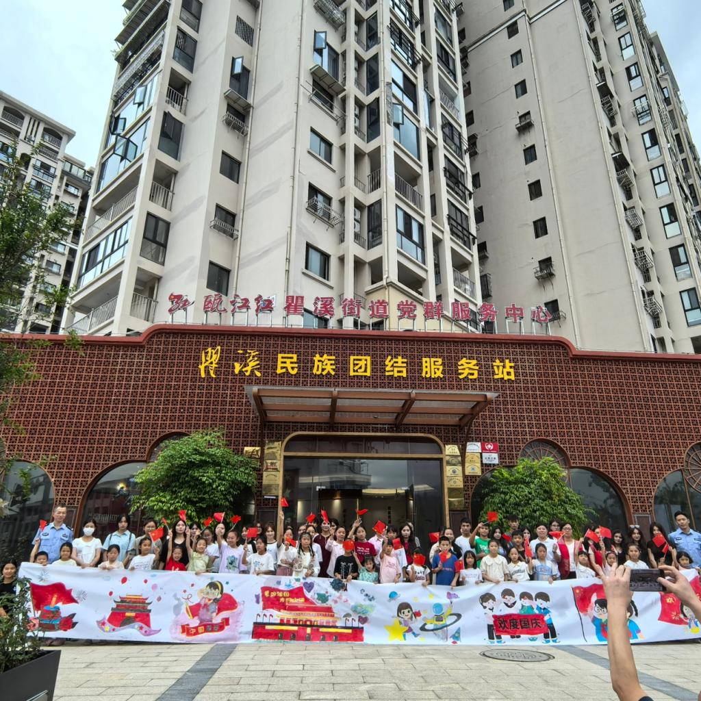 下午,留校民族员工参观温州和平解放谈判旧址——景德寺,随后前往瞿溪民族团结服务站与社区小朋友们一起朗诵诗词,一同在长卷上彩绘天安门、五星红旗和嫦娥工程,共唱《我和我的祖国》,祝福祖国繁荣富强。瞿溪派出所程正凯副所长、阿克苏拜城驻温州的干部及服务站工作人员带领民族员工参观了民族团结服务站,阿克苏拜城驻温州干部为员工们普及民族政策、介绍了新疆籍企业家在瞿溪创业的情况。来自维族老乡在温州生活创业的真实案例激发了民族员工的创业热情,大家兴奋地交流着彼此感受,希望今后在创新创业成长历程中能得到各位新疆籍企业家的指导和帮助。